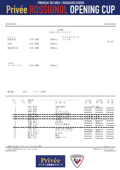 2日目のスタートリストを掲載します。 参加者の方々はご自分のスタート順をご確認お願いします。